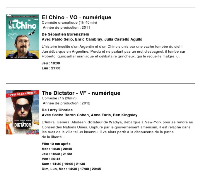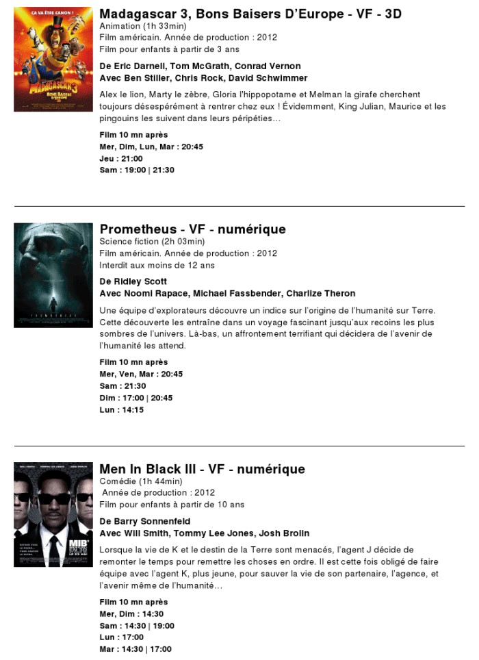 A l'affiche, cette semaine (du 20 au 26 juin 2012)