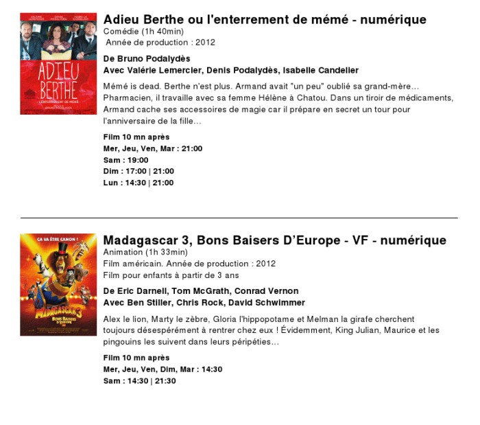 A l'affiche, cette semaine (du 11 au 17 juillet 2012)