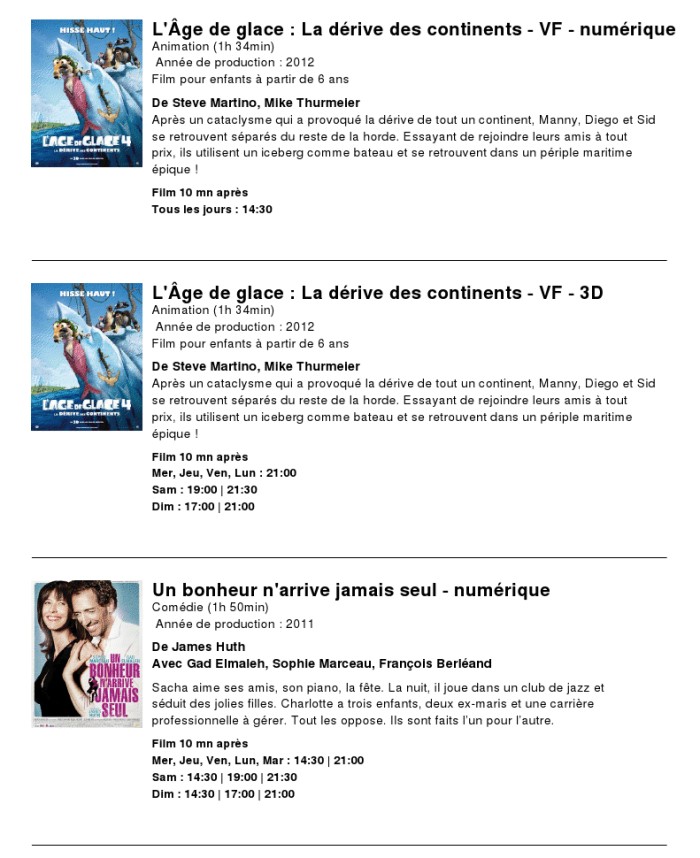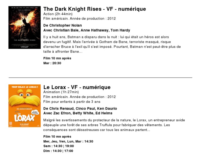 A l'affiche, cette semaine (du 18 au 24 juillet 2012)