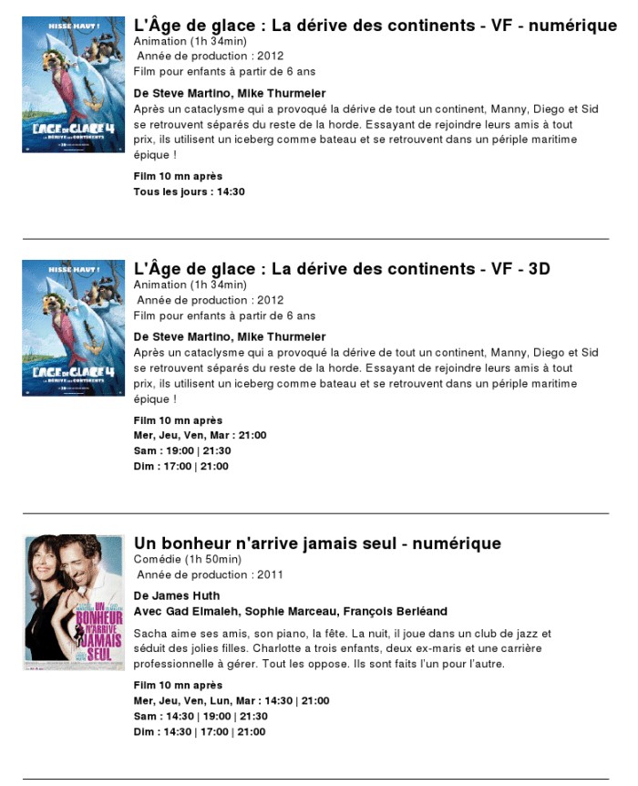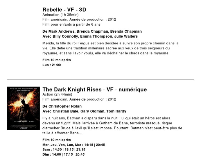 A l'affiche, cette semaine (du 25 au 31 juillet 2012)