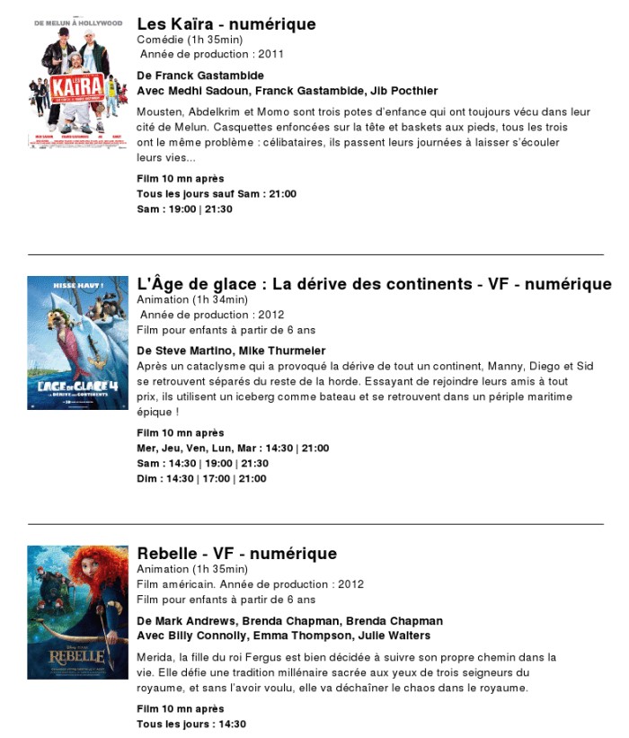 A l'affiche, cette semaine (du 1er au 7 août 2012)