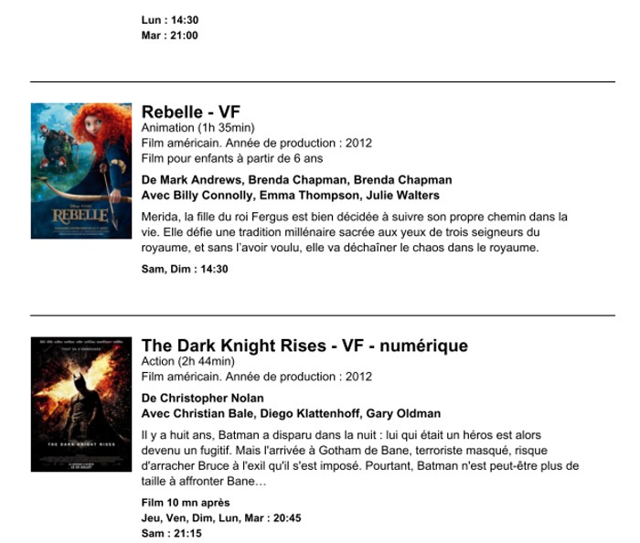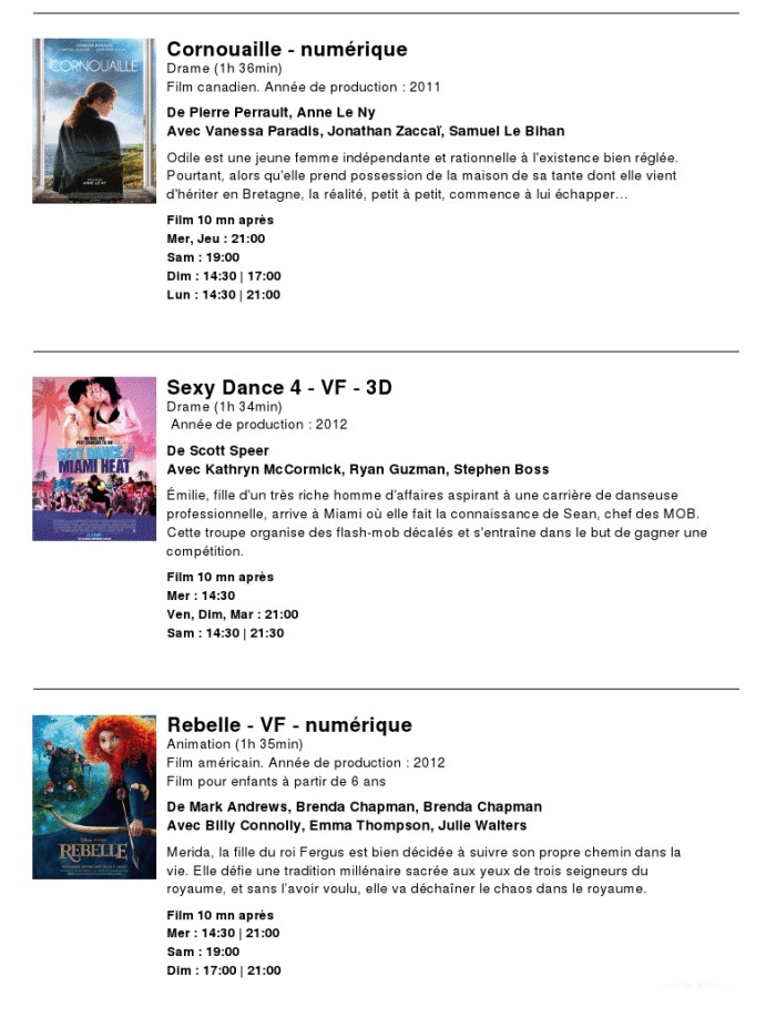 A l'affiche, cette semaine (du 5 au 11 septembre 2012)