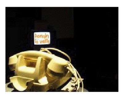 Le public est convié à entrer lampe de poche à la main, dans un espace plongé dans le noir, sorte de grenier technologique. Au milieu d’objets épars, chacun cherche la place numérotée qu’on lui a indiquée à l’entrée. Mais dans ce lieu, tout est en désordre, et les différentes assises (chaises, caisses, et mousses) sont dispersées.