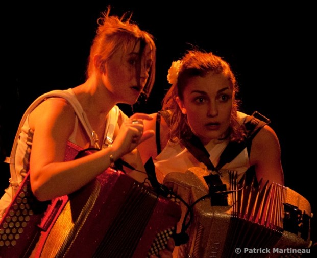 Voilà que derrière le nom Bob et Hercule se cachent deux jeunes femmes dont le dynamisme, l’enthousiasme musical et la créativité débordante les ont amenées à endosser chacune un accordéon pour entrer avec elles dans un univers musical atypique voire surréaliste. Bob et Hercule vous propose plus qu’un concert ordinaire mais un véritable show festif et théâtralisé. Parfois burlesques, poétique, émouvante et drôle par leur chanson, elles parlent d’elles, de vous et d’autres avec une bonne dose de folies féminines qui en ravi le public. myspace.com/bobethercule