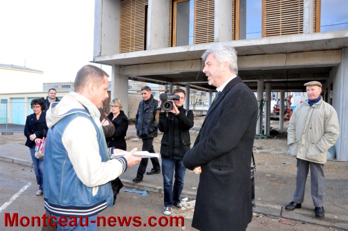 Comme nous vous l’avions annoncé, des enseignants du lycée Parriat de Montceau-les-Mines ont bloqué, ce lundi matin, le chantier de construction du futur internat d’excellence de l’établissement. Un mouvement de grogne qui a amené M. François-Marie Perrin, directeur académique des services de l’Eucation National a a venir sur place à la rencontre des grévistes.