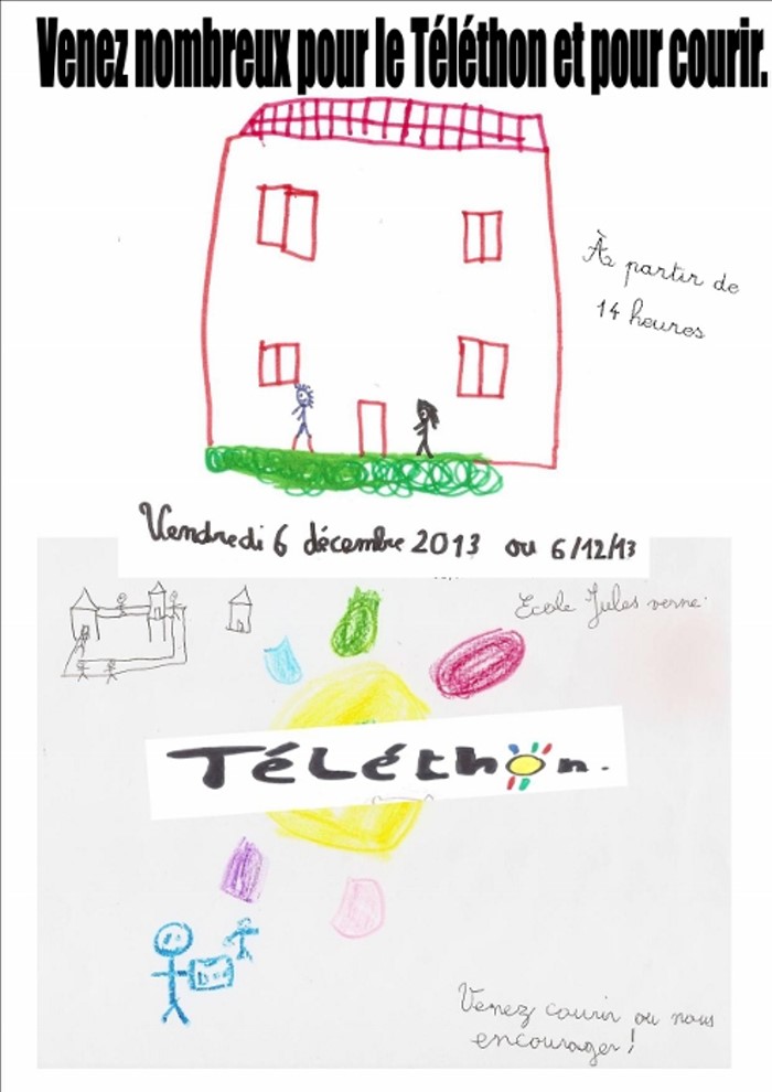 « Nous allons faire une course autour de l’école à l’occasion du téléthon . Venez nous encourager, courir avec nous et faites un don pour recompenser notre effort au profit des enfants malades ! »