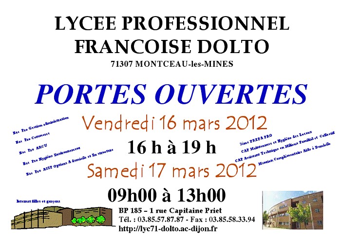 Portes ouvertes ce vendredi 16 et samedi 17 mars 2012