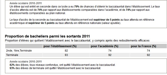 Indicateurs de résultats des lycées 2011 du ministère de l’Education Nationale