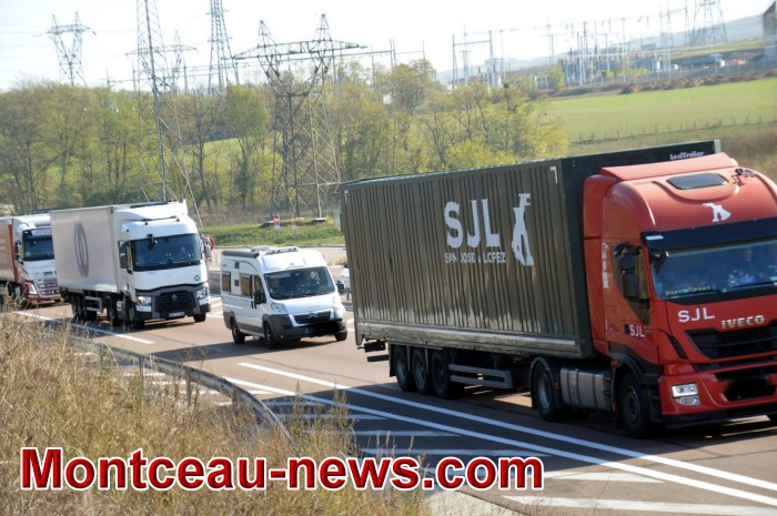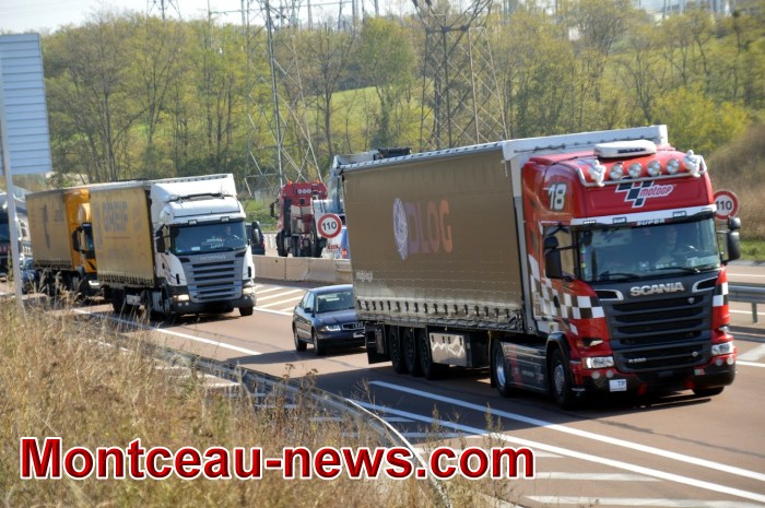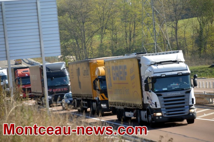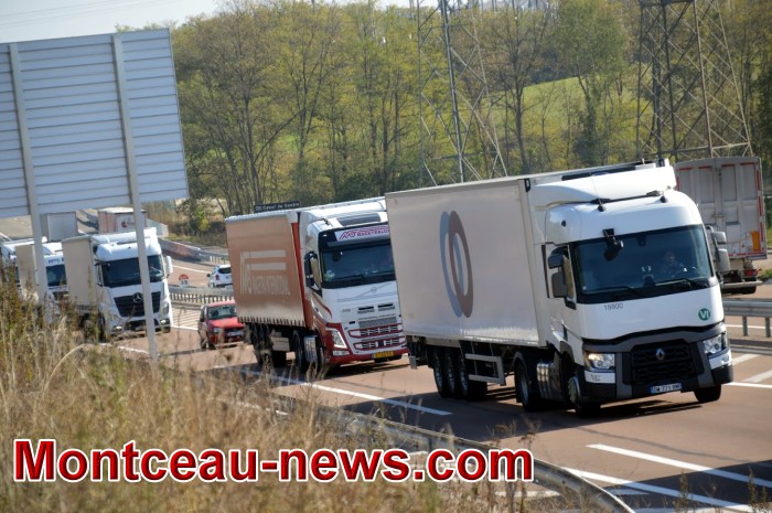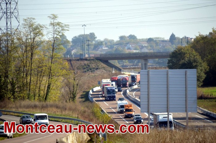 A 9h00, un convoi regroupant une trentaine des véhicules de chantier immatriculés est parti du rond point de Cortelin (Saint-Rémy) en direction du rond point Jeanne Rose (Montchanin). Ces véhicules circulant sur la voie de droite à vitesse réduite provoquent des ralentissements sur la RCEA RN80 en direction de Montchanin.