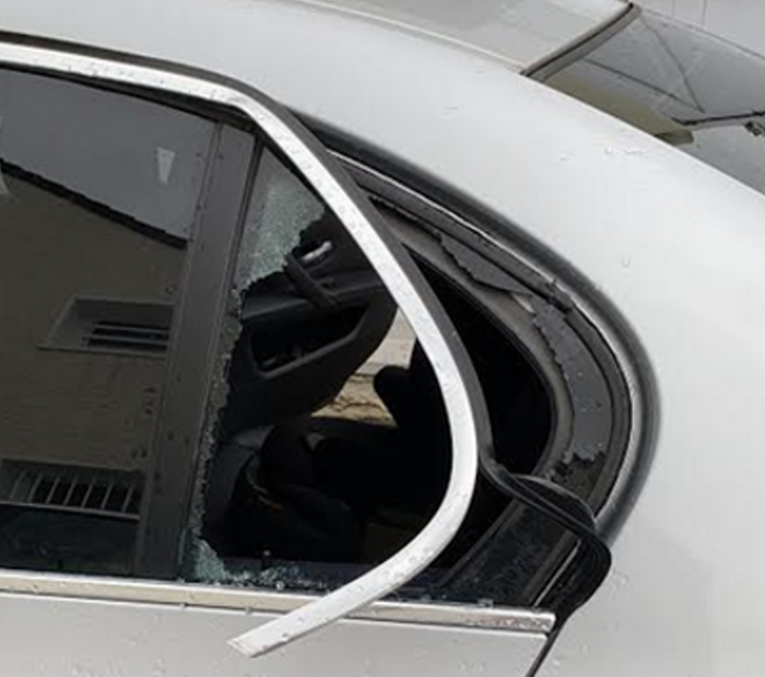 La petite vitre est cassée afin d’atteindre la poignée et ouvrir la voiture .