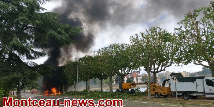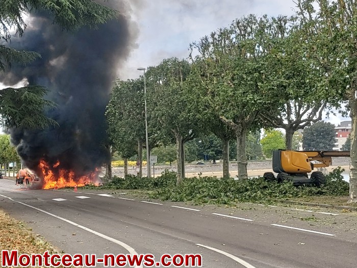 Depuis quelques jours maintenant, les arbres qui ornent l’Étang du Plessis étaient coupés quotidiennement mais ce mardi matin, une nacelle qui sert à rejoindre le haut des arbres à flamber très rapidement. Les sapeurs pompiers de Montceau, au nombre d’une dizaine et placés sous le commandement du lieutenant Sylvain Patru , ont rapidement circonscrit ce feu après leur arrivée. Malgré tout, les dégâts causés au feuillage sont assez conséquents, au point que cette partie du boulevard de Lattre de Tassigny, n’est plus tout à fait le même…
