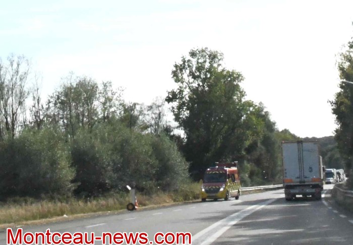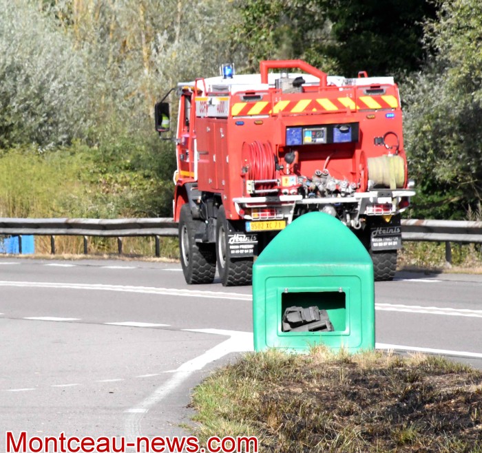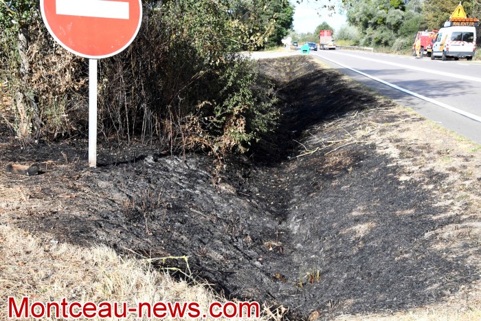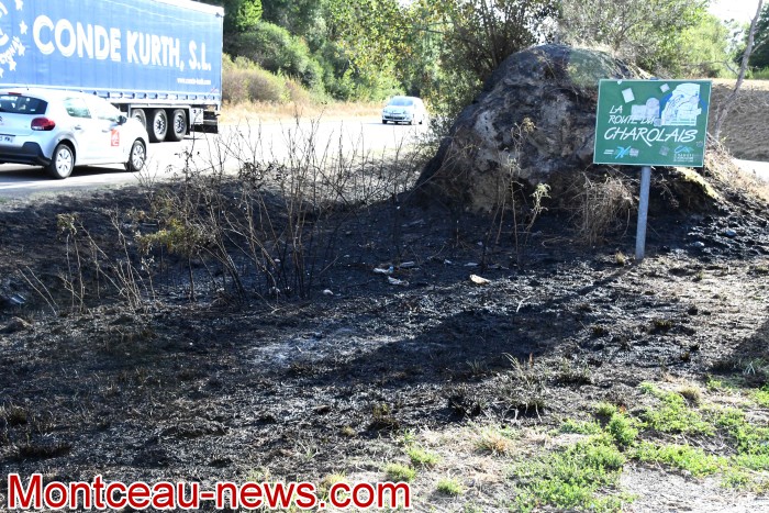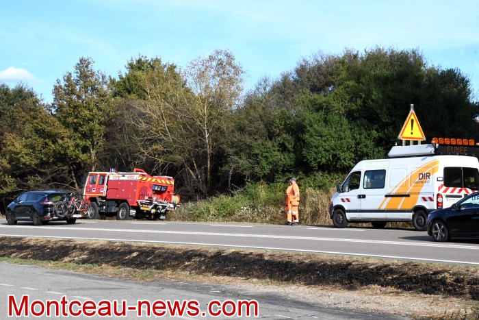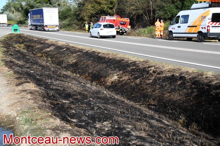 Lundi après-midi, les pompiers ont été appelés pour un feu sur la RCEA à hauteur du parking entre la sortie Couere et Rozelay.