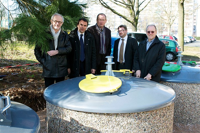 Les conteneurs semi-enterrés représentent pour la communauté urbaine un investissement de 300 000 euros HT, et a bénéficié de la participation financière de l’OPAC Saône-et-Loire (3 900€) ont souligné Jean-Claude Lagrange, président de la CMCU, Thomas Thévenoud, président de l’OPAC, André Vannier, vice-président en charge des déchets, etc. Participaient également à cette visite: Laurent Selvez, adjoint, Michel Menneboeuf, conseiller délégué, Jacques Brunet, directeur du service Proximité et Jean Daeira, responsable de la collecte à la communauté.