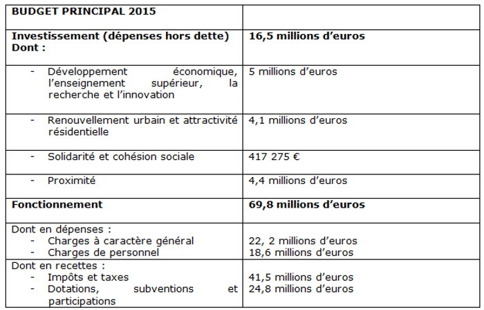 Et le président de poursuivre : « le budget principal 2015 de la communauté urbaine Creusot Montceau vise à maintenir le niveau d’investissement nécessaire au développement du territoire sans augmenter les taux de fiscalité et dans un contexte de restriction des ressources. Des efforts significatifs ont ainsi dû être consentis sur les dépenses de fonctionnement.
