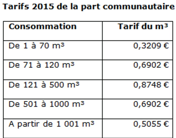 Tarifs de l’eau (part communautaire)