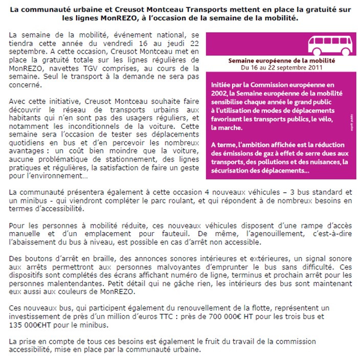 Les lignes MonRezo gratuites du 16 au 22 septembre 2011