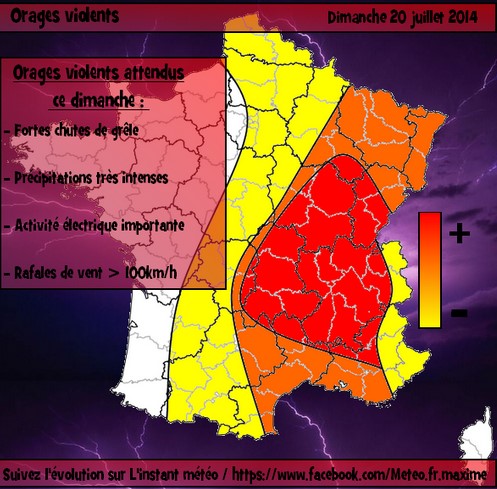 Orages violents et fortes pluies prévus ce dimanche 20 juillet 2014