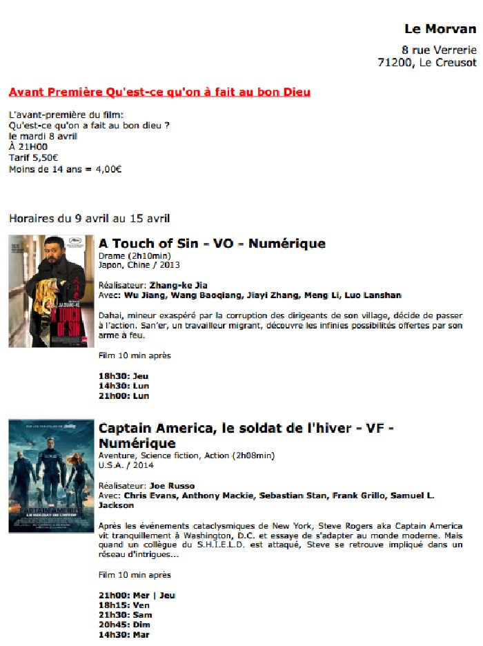A l'affiche, cette semaine (du 9 au 15 avril 2014)