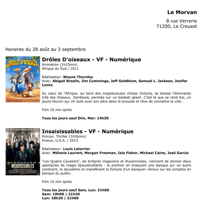A l'affiche, cette semaine (du 28 août au 3 septembre 2013)