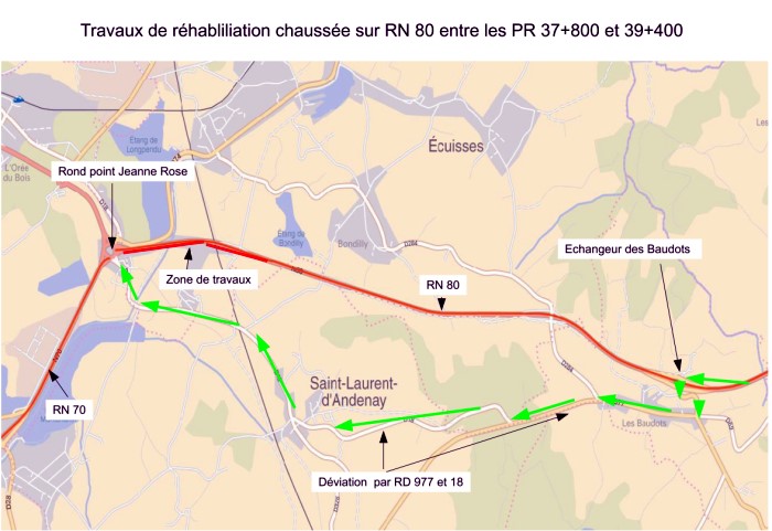 Travaux de réhabilitation chaussée bidirectionnelle sur RN 80