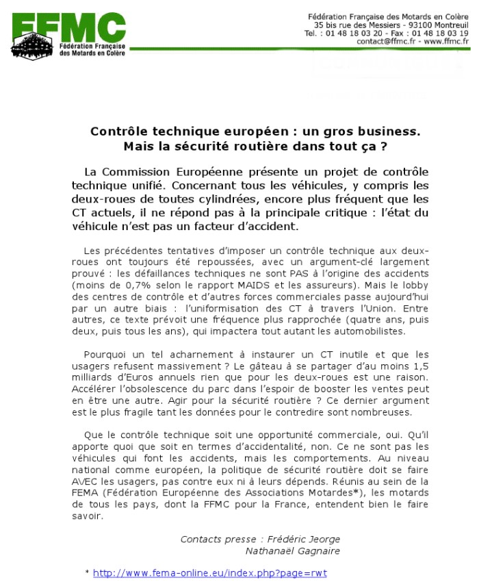 Opposée au contrôle technique européen
