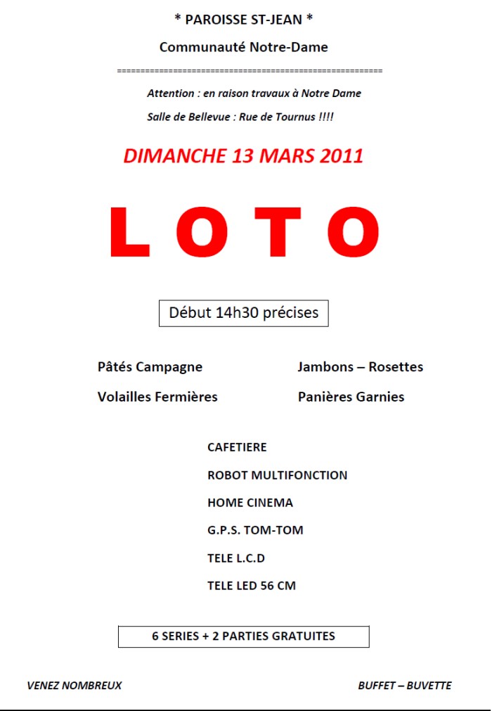 Loto ce dimanche 13 mars 2011