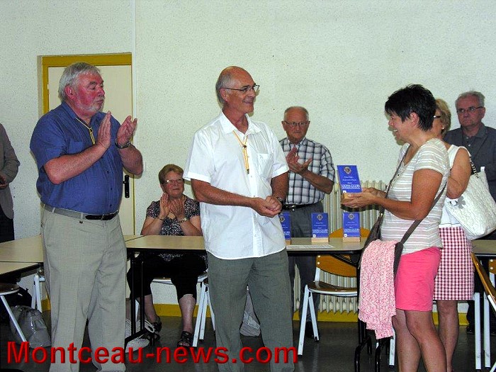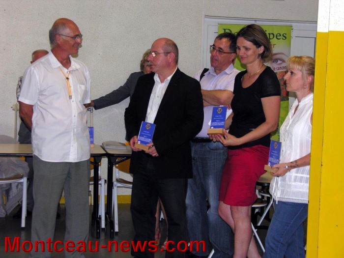 En premier lieu, un trophée fut remis à Bernard Rouget qui a versé la quête obtenue lors des obsèques de son épouse décédée des suites d’un cancer. 1850€ ont été remis au Lions et 215€ à la ligue contre le cancer. Bernard Rouget tient à remercier tous les donateurs pour leurs gestes généreux et d’espoir.