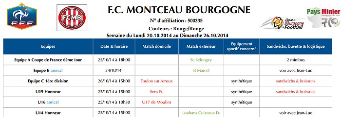 Le planning de la semaine du 20 au dimanche 26 octobre 2014