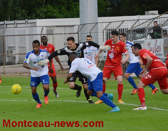 La fin de match sera plus calme ,Montceau et Mulhouse se quittent sur le même score que le match aller 1-1 et le forfait général de Moulins, annoncé peu avant 18h permet aux FCMB de s’offrir le maintien. Le capitaine Florian Boucansaud insistait après le match, sur le fait que le maintien fut acquis par le FCMB et non pas grâce à l’As Moulins.