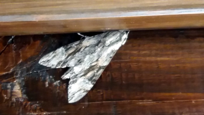 La photo n’est malheureusement pas très nette mais il me semble reconnaître un Agrius convolvuli (sphinx du liseron).