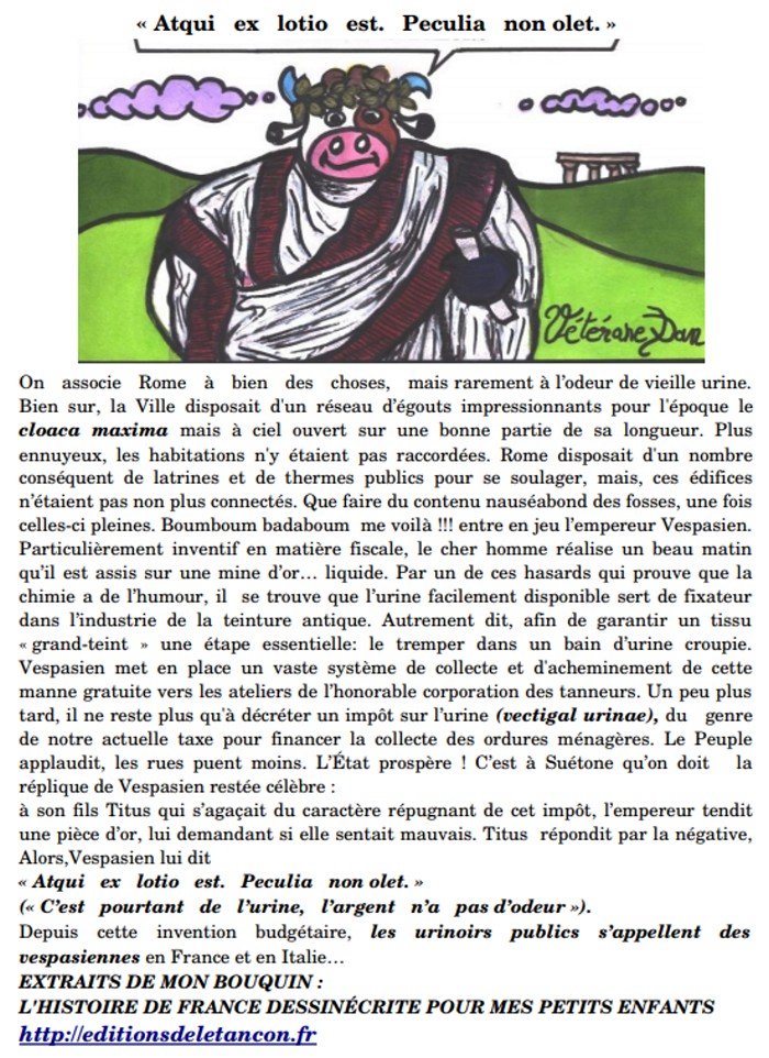 Merci beaucoup pour cette explication. Je connaissais Vespasien et les Vespa siennes mais pas l histoire liée à l urine…