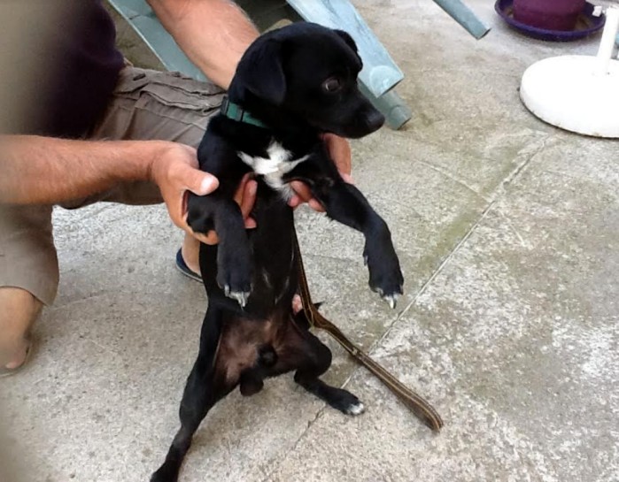 « Trouvé petit chien noir avec une tâche blanche sur la poitrine et un petit collier vert, au lac de la Sorme à Sauvage.