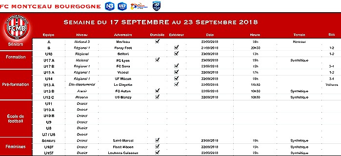 Planning du FC Montceau-Bourgogne (Montceau-les-Mines)