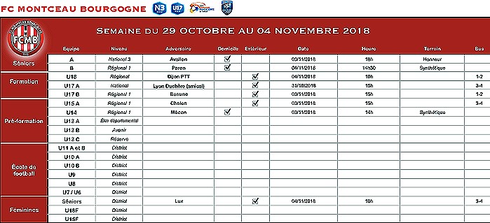 Planning du FC Montceau-Bourgogne (Montceau-les-Mines)