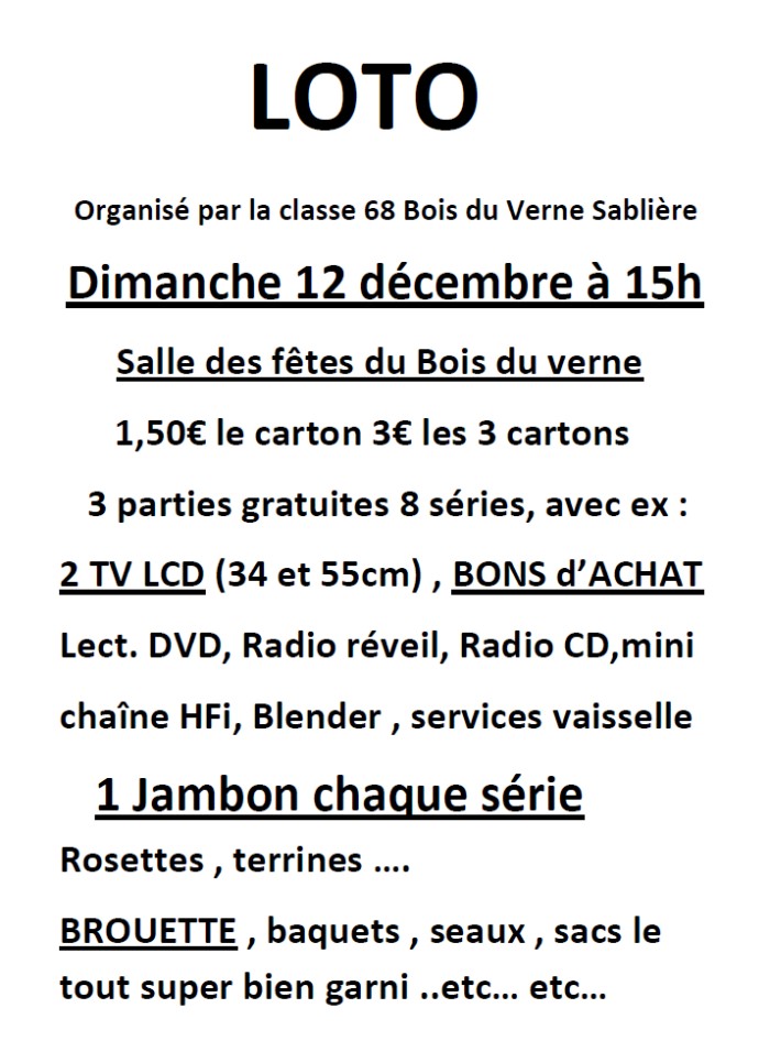 Loto de la classe 68 du Bois du Verne – La Sablière (Montceau-les-Mines)