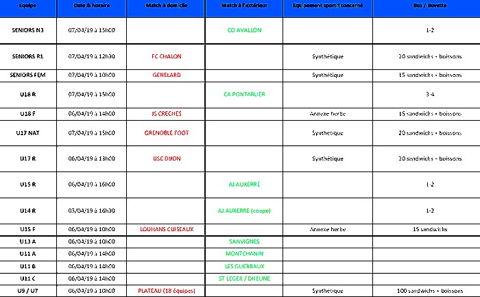 Planning du FC Montceau-Bourgogne (Montceau-les-Mines)