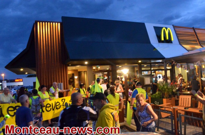 Après une séance photos sur les marches de l’Hôtel de ville, les Gilets Jaunes ont attendu que la pluie cesse à l’abri sous le kiosque avant d’entamer une marche semi-nocturne qui les a conduits au carrefour de la 9ème, puis au carrefour Mac Do, une incursion sur le parking du géant américain pour lui demander de « payer ses impôts », un détour chez le nouveau fast food, Burger King, pour le même message, retour en ville par la rue de la République, pause sur la place de l’église avant de rejoindre le point de départ. Durant ce périple, les hommes du commissaire Christophe Laulan ont accompagné les déplacements pour sécuriser la manifestation. Quelques mots furent échangés au cours desquels le commissaire a rappelé qu’il venait d’arriver et que l’on repartait sur ses bases.