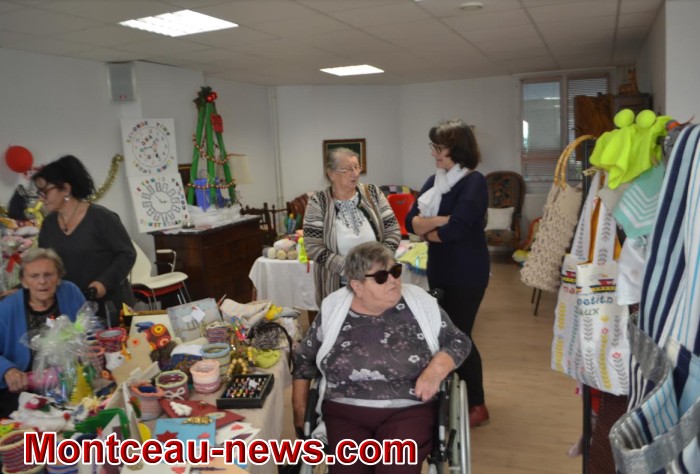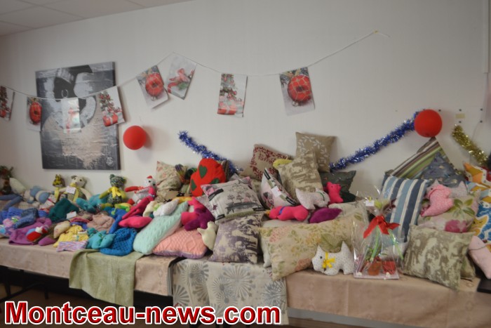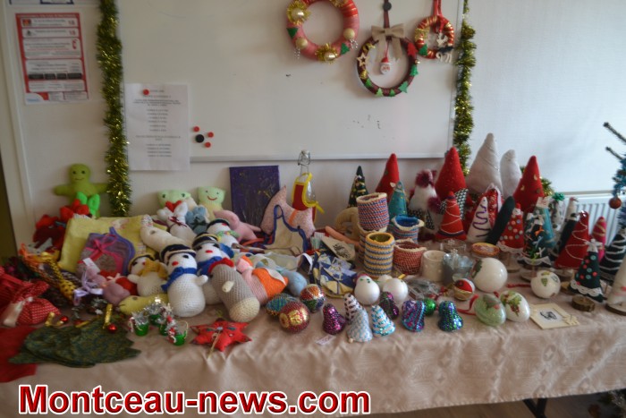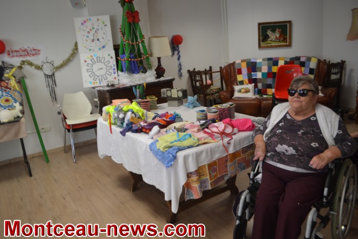 Ce sont les résidents eux-mêmes et leurs familles qui avaient confectionné les ravissants objets exposés et vendus lors de ce marché …décos de Noël, animaux de laine ou de plumes, travaux de tricot variés, sacs, gâteaux, tabliers, broderies ,lampes, et bien d’autres tentations pour les visiteurs venus nombreux. Des résidents et leurs amis mais également des personnes venues de l’extérieur.