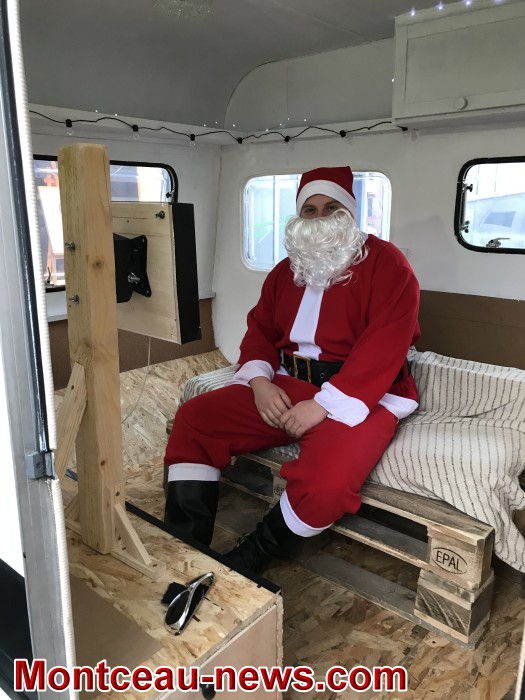 Le père Noël a bien pris possession de la caravane photomaton pendant que les enfants ont participé à la décoration du sapin en personnalisant quelques étoiles pour orner les branches d’épine.