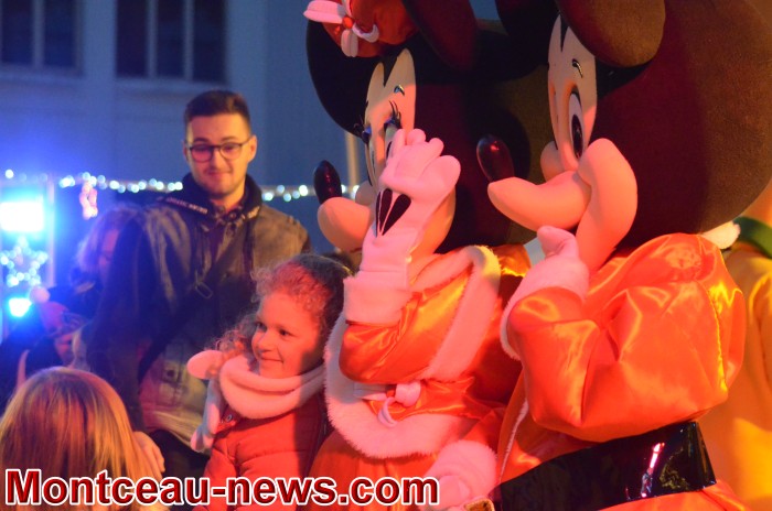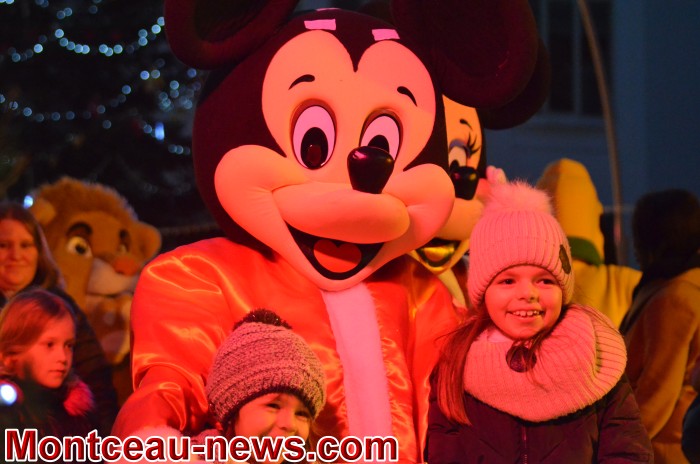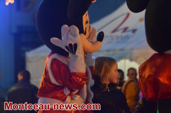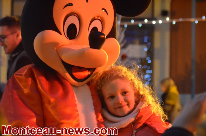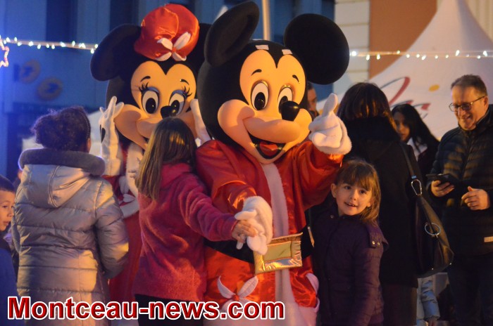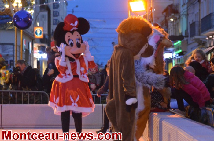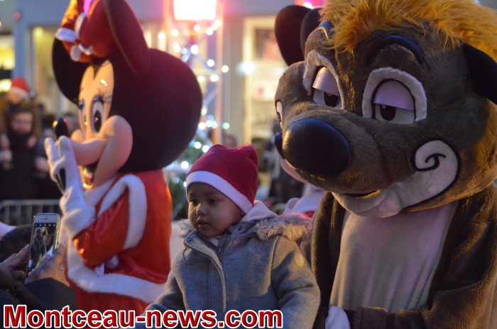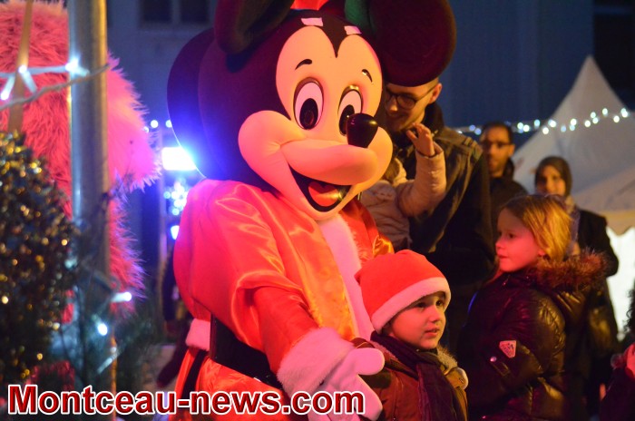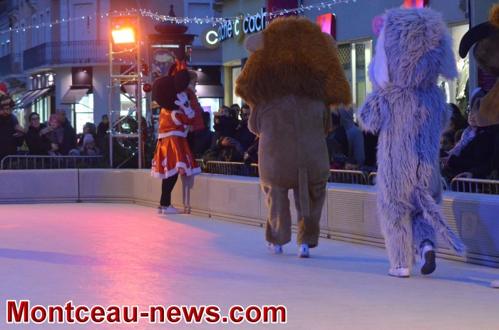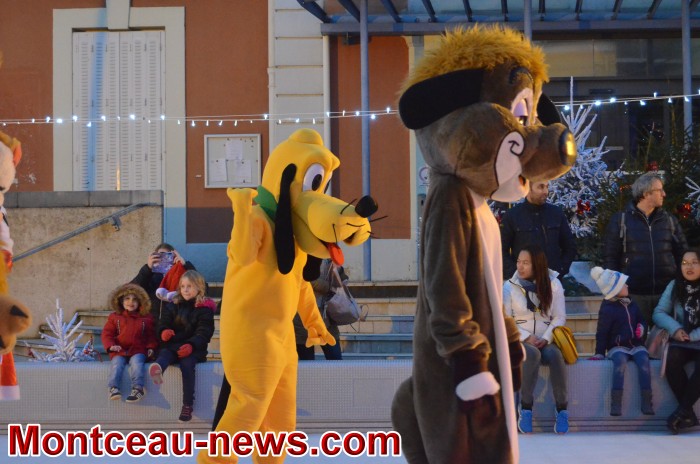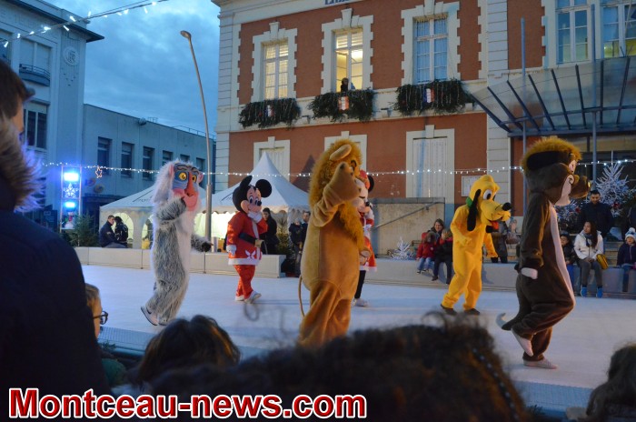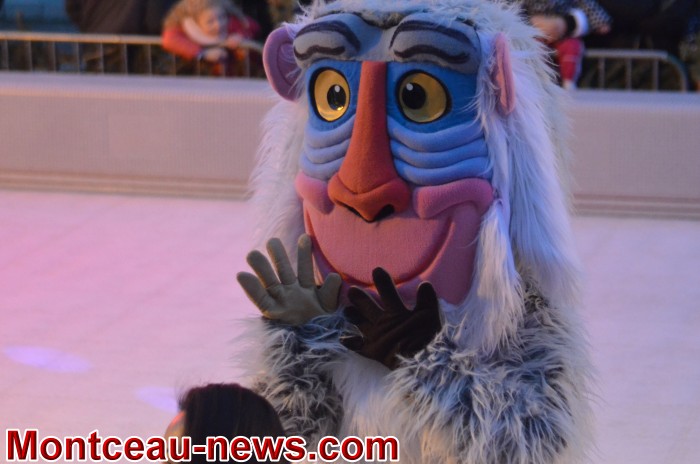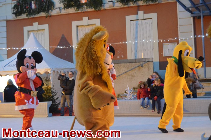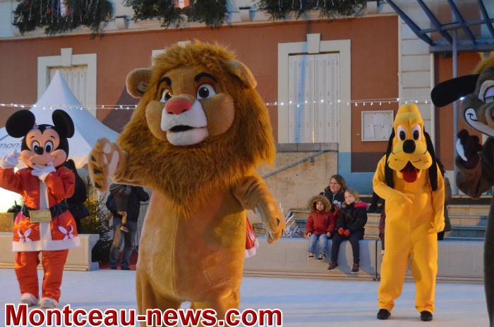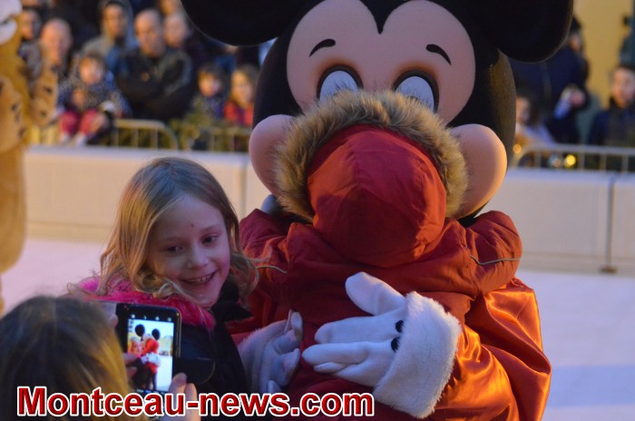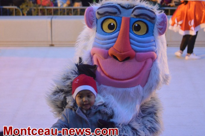 En plus de la patinoire installée depuis plusieurs jours ; un marché de Noël, une cabane du père Noël, le traditionnel carrousel, le tour en calèche et un spectacle des mascottes Disney sur la patinoire. C’est le moment pour les enfants de voir Mickey, Mini, Rafiki, Simba…Bref des personnages qui représentent toute une mythologie pour eux. « Prend moi en photo avec Mickey ! »