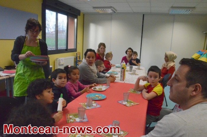 Ce lundi, la maison de la parentalité de Montceau organisait un atelier parents/enfants. L’objectif de cet atelier, accessible sur inscription, était de faire partage un moment convivial entre parents et enfants. Une partie de l’après midi était consacrée à la réalisation de « sablés de Noël ».