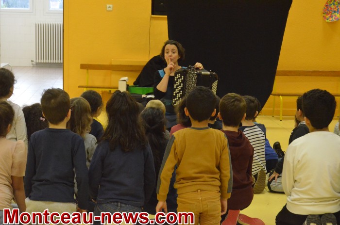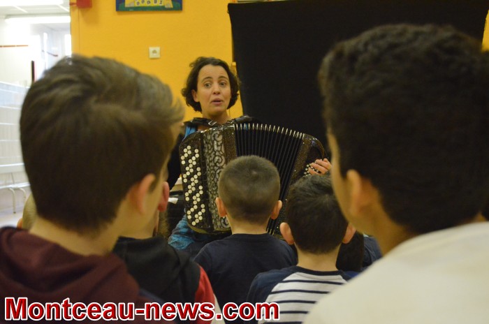 Après le gouter partagé, Estelle Bernigal, présente à tous les enfants du centre, petits et grands, différentes chansons et démonstration d’instruments. Grand succès de « Gaston l’accordéon » qui téléporte les enfants, en musique, dans différents pays du monde et ouvre les jeunes à différentes sonorités traditionnelles.
