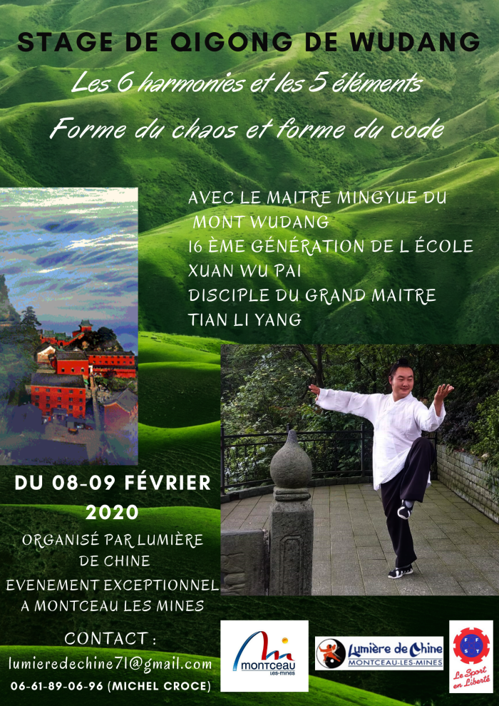 Ces deux jours seront consacrés à l’apprentissage du Qi Gong du Mont Wudang avec l’approfondissement d’une méthode complète « des 6 harmonies et des 5 éléments « .