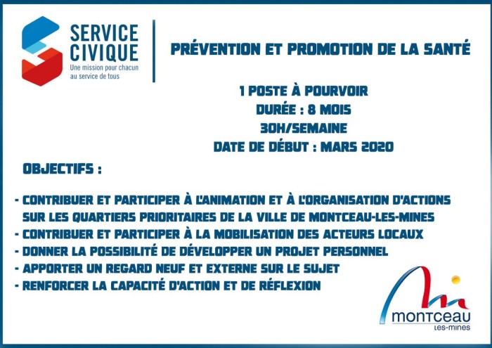 Le pôle santé de la ville de Montceau-les-Mines recherche un service civique.