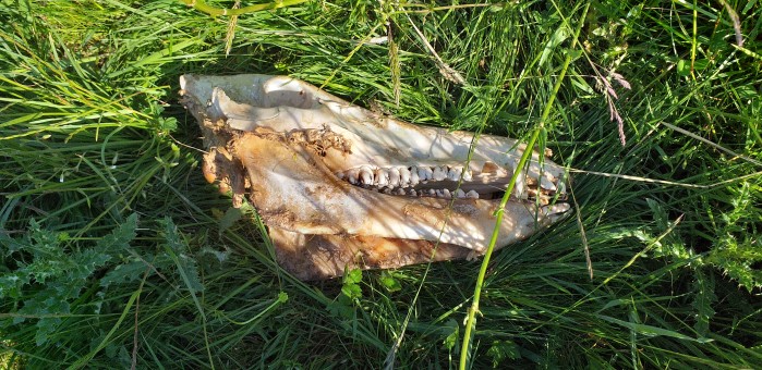 Hier, il avait choisi la Sorme et comme il l’a écrit dans son « compte-rendu », il a fait cette « découverte » avec cette question : je suis tombé par hasard sur un crâne, qui pourrait dire de quel animal il s’agit ?