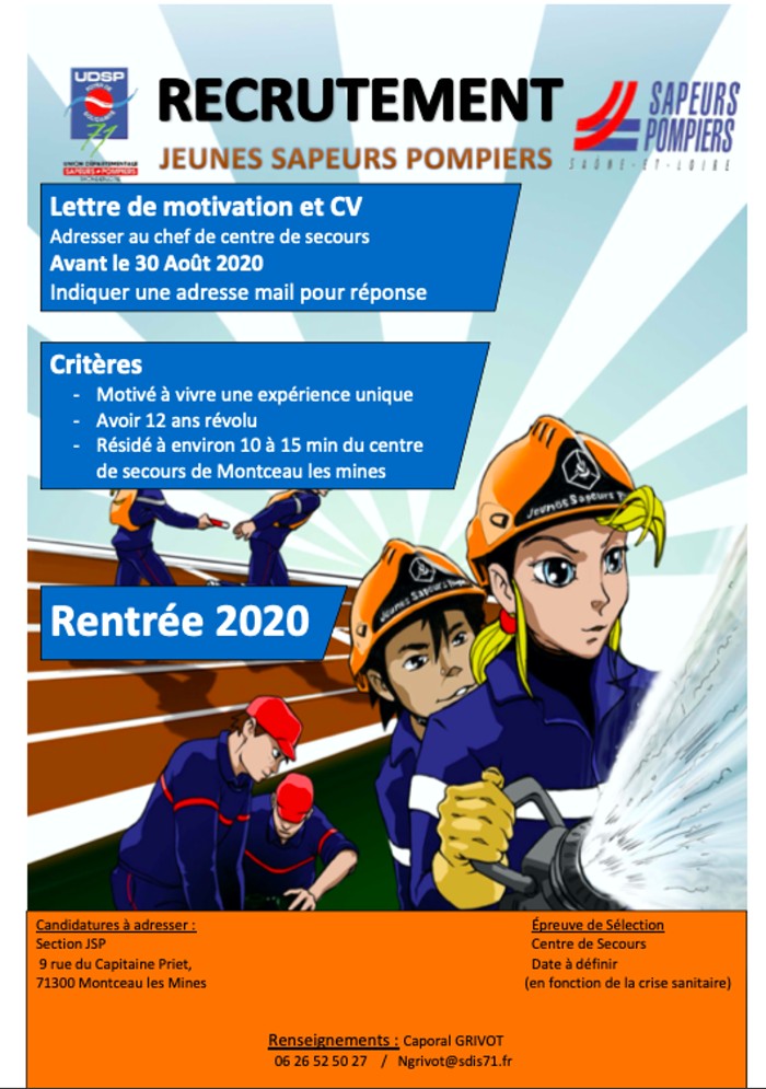 Recrutement de Jeunes Sapeurs-Pompiers à Montceau-les-Mines