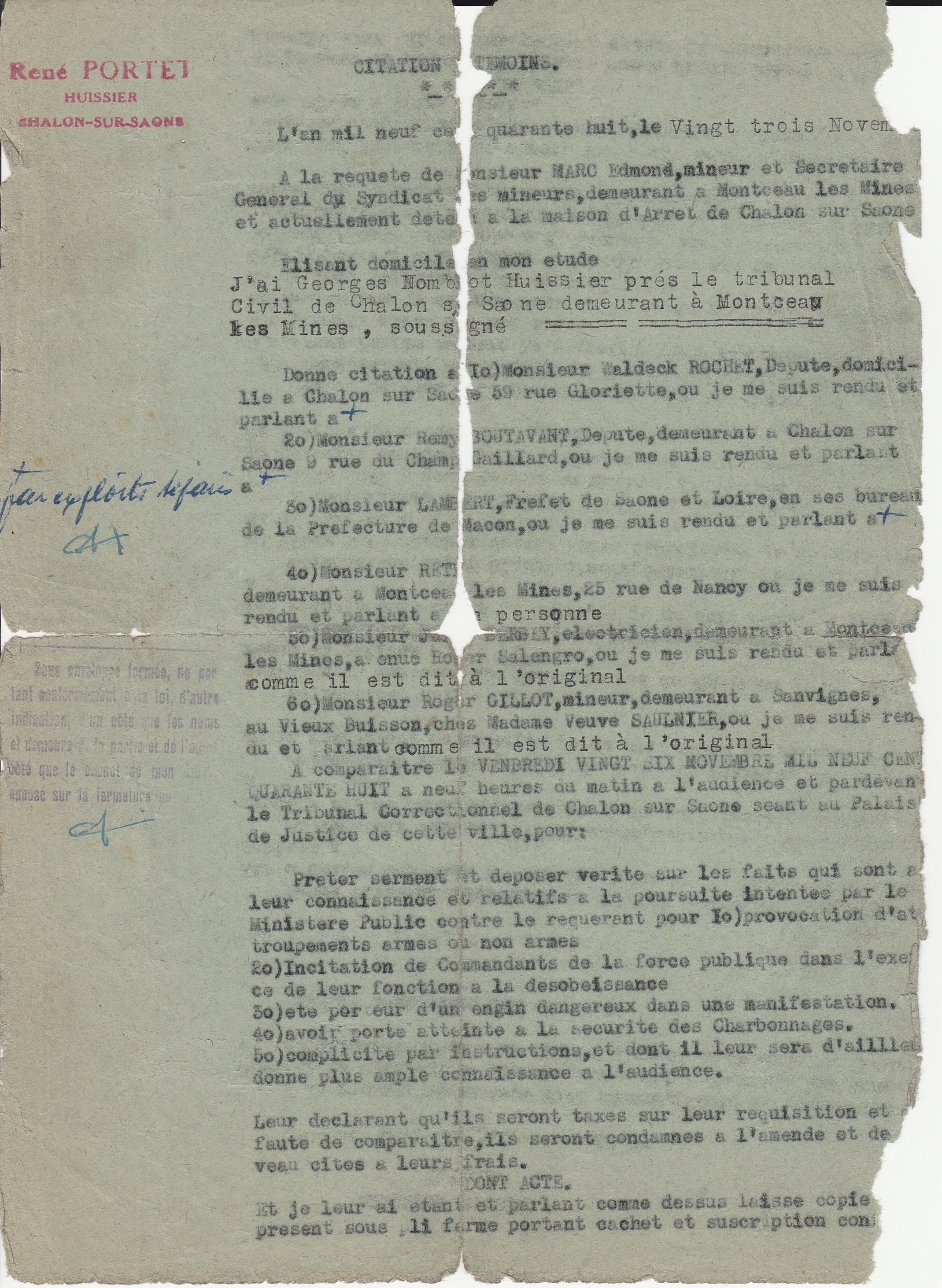 Des témoins qui avaient été appelés à déposer au procès qui a eu lieu à Chalon le 26 novembre 1948 :