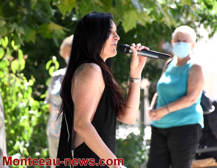 Axelle Mas, une chanteuse dynamique qui a su capter l’attention des passants puisque rarement autant de spectateurs ont stationné aux abords du kiosque.