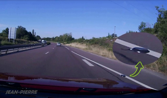 Le danger ? Pour les deux-roues, évidemment ! Et une autre question : comment quelqu’un a-t-il pu perdre un ustensile de cuisine à la hauteur de la station service ?