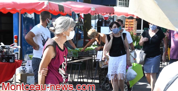 Après diverses déambulations sur le marché, il semble que le message ait été entendu. Les forains, vendeurs et clients étaient pour la plupart masqués.